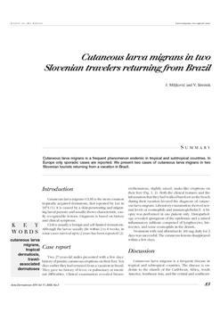 Miljković, Jovan, Breznik, Vesna. "Cutaneous larva migrans in two Slovenian travelers returning from Brazil."