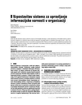 Brezavšček, Alenka, Moškon, Stane. "Vzpostavitev sistema za upravljanje informacijske varnosti v organizaciji."