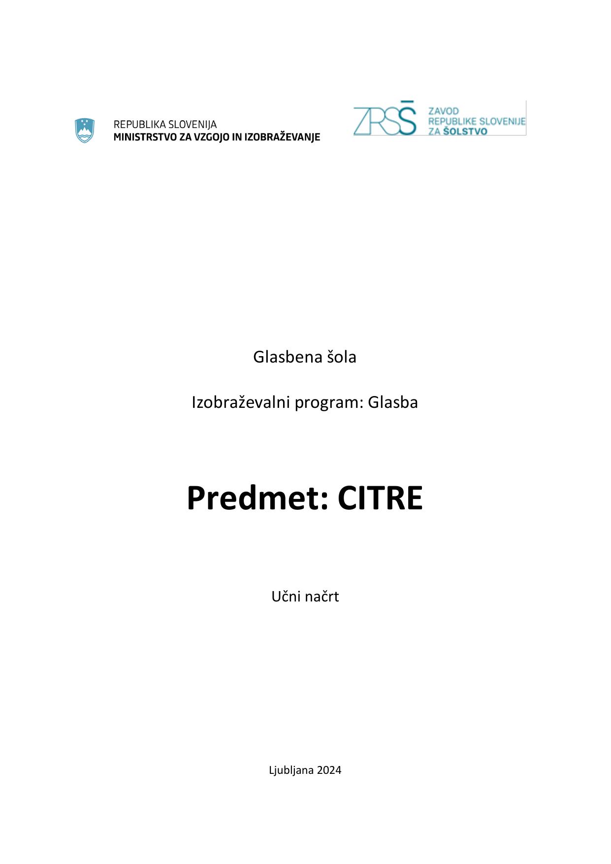 Predmet: citre : glasbena šola : izobraževalni program: glasba : učni načrt