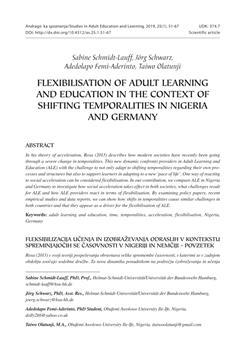 Schmidt-Lauff, Sabine, Schwarz, Jörg, Femi-Aderinto, Adedolapo, Olatunji, Taiwo. "Flexibilisation of adult learning and education in the context of shifting temporalities in Nigeria and Germany."