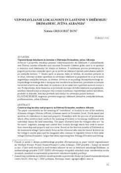 Gregorič Bon, Nataša. "Vzpostavljanje lokalnosti in lastnine v Dhërmiju/Drimadesu, južna Albanija."