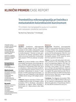 Nizič, Tea, Zver, Samo, Brecelj, Erik (2015). Trombotična mikroangiopatija pri bolniku z metastatskim kolorektalnim karcinomom.