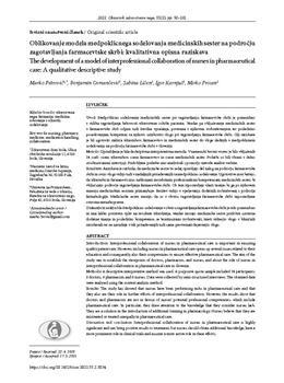 Petrović, Marko, Osmančević, Benjamin, Ličen, Sabina, Karnjuš, Igor, Prosen, Mirko (2021). Oblikovanje modela medpoklicnega sodelovanja medicinskih sester na področju zagotavljanja farmacevtske skrbi.
