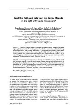 Cassen, Serge, Vigier, Emmanuelle, Weller, Olivier, Chaigneau, Cyrille, Hamon, Gwenaëlle, Labriffe, Pierre-Arnaud de, Martin, Chloé. "Neolithic flat-based pots from the Carnac mounds in the light of Cycladic "frying pans"."