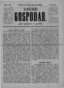 Slovenski gospodar letnik 10. številka 18 (27.04.1876).