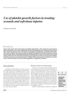 Rožman, Primož, Bolta, Zoran. "Use of platelet growth factors in treating wounds and soft-tissue injuries."