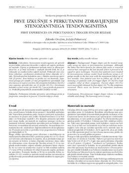 Orožim, Zdenko, Pekarović, Jožefa. "Prve izkušnje s perkutanim zdravljenjem stenozantnega tendovaginitisa."