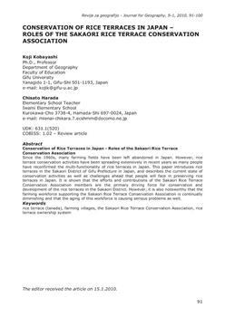 Kobayashi, Koji, Harada, Chisato. "Conservation of rice terraces in Japan - roles of the Sakaori rice terrace conservation association."