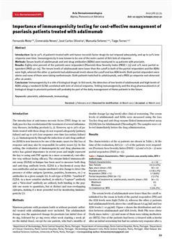 Mota, Fernando, Neves, Esmeralda, Oliveira, José Carlos, Selores, Manuela, Torres, Tiago. "Importance of immunogenicity testing for cost-effective management of psoriasis patients treated with adalimumab."