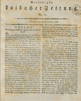 Intelligenzblatt zur Laibacher Zeitung26.09.1820