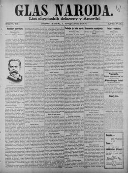 Glas naroda: najstarejši list slovenskih delavcev v Ameriki (01.08.1900), letnik 8, številka 61. URN:NBN:SI:doc-M6UE9YX6 from http://www.dlib.si