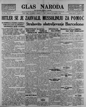 Glas naroda: najstarejši list slovenskih delavcev v Ameriki (19.03.1938), volume 46, issue 64. URN:NBN:SI:doc-NICRWFCO from http://www.dlib.si