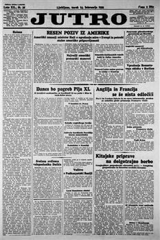 Jutro: dnevnik za gospodarstvo, prosveto in politiko (14.02.1939), letnik 20, številka 38. URN:NBN:SI:doc-NKHAYKOB from http://www.dlib.si