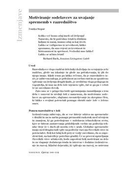 Stopar, Ivanka (2012). Motiviranje sodelavcev za uvajanje sprememb v razredništvo.