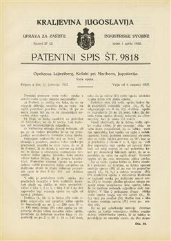 Patentni spis. Razred 37. Oddelek 211931(Zbirni zapis)