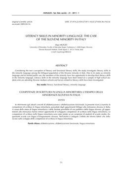 Literacy skills in minority language : the case of the Slovene minority in Italy