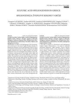 Lazaridis, Georgios, Melfos, Vasilios, Papadopoulou, Lambrini, Onac, Bogdan P., Stergiou, Christos L., Maravelis, Angelos G., Voudouris, Panagiotis, Dora, Despoina, Fitros, Michalis, Papaioannou, Haritakis, Vouvalidis, Konstantinos (2024). Sulfuric acid speleogenesis in Greece.