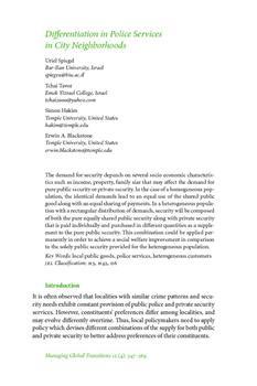 Spiegel, Uriel, Tavor, Tchai, Hakim, Simon, Blackstone, Erwin A.. "Differentiation in police services in city neighborhoods."
