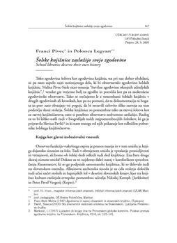Pivec, Franci, Legvart, Polona. "Šolske knjižnice zaslužijo svojo zgodovino."