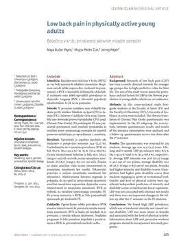 Bučar Pajek, Maja, Peček, Mojca, Pajek, Jernej. "Low back pain in physically active young adults."