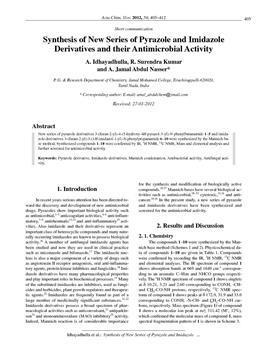 Idhayadhulla, A., Surendra Kumar, R., Nasser, A. Jamal Abdul. "Synthesis of new series of pyrazole and imidazole derivatives and their antimicrobial activity."