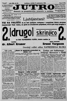 Jutro: dnevnik za gospodarstvo, prosveto in politiko (11.09.1927), letnik 8, številka 214. URN:NBN:SI:doc-RHFTGRIT from http://www.dlib.si