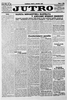 Jutro: dnevnik za gospodarstvo, prosveto in politiko (04.10.1938), letnik 19, številka 230. URN:NBN:SI:doc-S6OJILTN from http://www.dlib.si