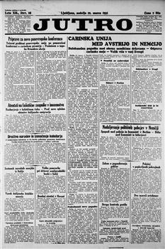 Jutro: dnevnik za gospodarstvo, prosveto in politiko (21.03.1931), letnik 12, številka 68. URN:NBN:SI:doc-SSFFNB6A from http://www.dlib.si