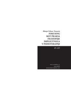 Vrhunc Tomazin, Mateja. "Fokusing kot praksa filozofije implicitnega v psihoterapiji."