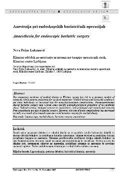 Požar-Lukanovič, Neva (2007). Anestezija pri endoskopskih bariatričnih operacijah.