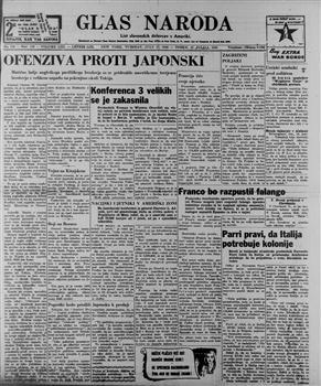 Glas naroda: najstarejši list slovenskih delavcev v Ameriki (17.07.1945), letnik 53, številka 138. URN:NBN:SI:doc-TTDCUYIS from http://www.dlib.si