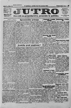 Jutro: dnevnik za gospodarstvo, prosveto in politiko (16.01.1921), letnik 2, številka 14. URN:NBN:SI:doc-U803LLKT from http://www.dlib.si
