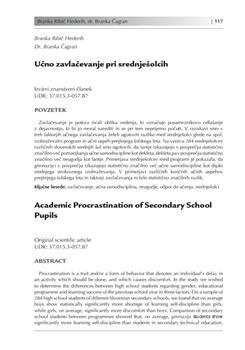 Ribič Hederih, Branka, Čagran, Branka. "Učno zavlačevanje pri srednješolcih."
