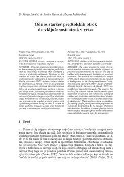 Karačić, Marija, Kadum, Sandra, Radetić Paić, Mirjana (2022). Odnos staršev predšolskih otrok do vključenosti otrok v vrtce.