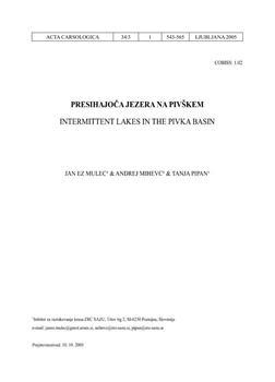 Mulec, Janez, Mihevc, Andrej, Pipan, Tanja. "Presihajoča jezera na Pivškem."
