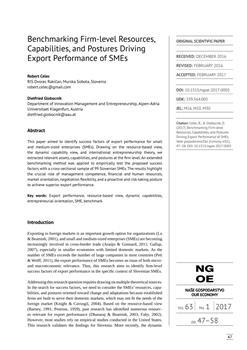 Celec, Robert, Globocnik, Dietfried (2017). Benchmarking firm-level resources, capabilities, and postures driving export performance of SMEs.