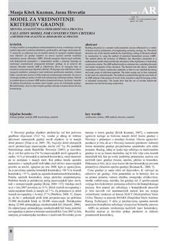 Kitek Kuzman, Manja, Hrovatin, Jasna. "Model za vrednotenje kriterijev gradnje."