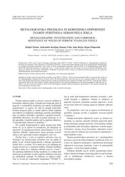 Torkar, Matjaž, Kocijan, Aleksandra, Celin, Roman, Burja, Jaka, Podgornik, Bojan (2016). Metalografska preiskava in korozijska odpornost zvarov feritnega nerjavnega jekla.