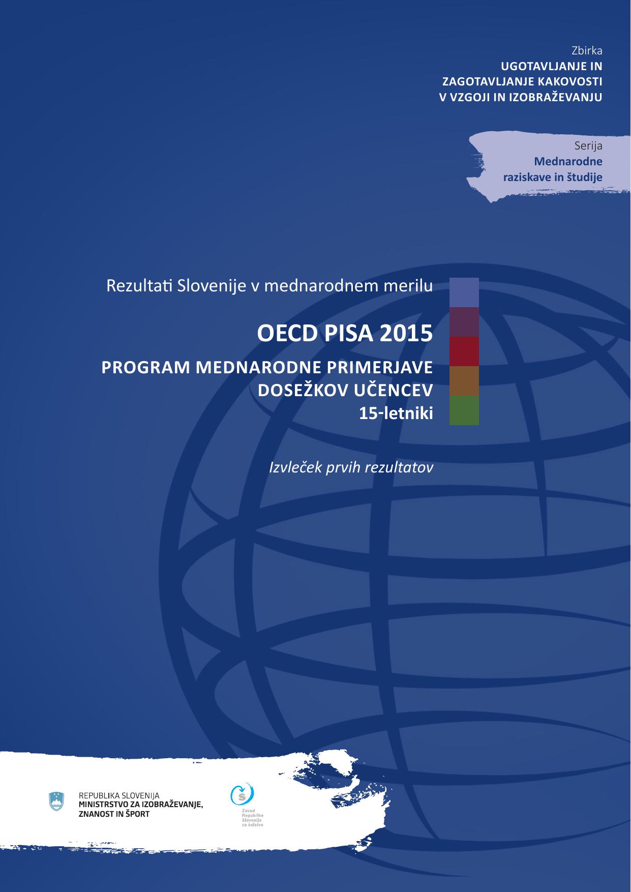 Rezultati Slovenije v mednarodnem merilu : OECD PISA 2015 : program mednarodne primerjave dosežkov učencev : 15-letniki : izvleček prvih rezultatov