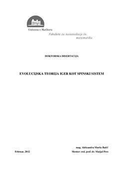Murks Bašič, Aleksandra, Perc, Matjaž (2012). Evolucijska teorija iger kot spinski sistem. URN:NBN:SI:DOC-1Y3JQUWP from http://www.dlib.si