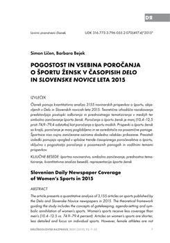 Ličen, Simon, Bejek, Barbara. "Pogostost in vsebina poročanja o športu žensk v časopisih Delo in Slovenske novice leta 2015."