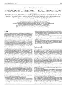 Belović, Branislava, Šelb-Šemerl, Jožica, Hovnik-Keršmanc, Marjetka, Skaza, Alenka, Radešček, Darja, Ivartnik, Franc, Stanojević-Jerković, Olivera, Jerman, Tjaša, Lovrečič, Barbara. "Spremljanje umrljivosti - zakaj, kdo in kako."