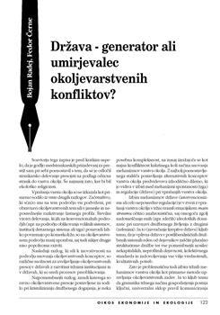 Radej, Bojan, Černe, Fedor. "Država - generator ali umirjevalec okoljevarstvenih konfliktov."