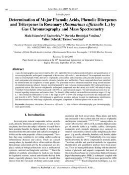 Islamčević Razboršek, Maša, Brodnjak-Vončina, Darinka, Doleček, Valter, Vončina, Ernest. "Determination of major phenolic acids, phenolic diterpenes and triterpenes in Rosemary (Rosmarinus Officinalis L.) by gas chromatography and mass spectrometry."