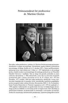 Orel, Irena (2016). Petinosemdeset let profesorice dr. Martine Orožen.