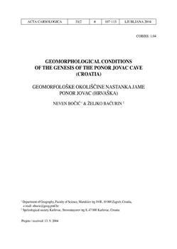 Bočić, Neven, Baćurin, Željko. "Geomorphological conditions of the genesis of the Ponor Jovac cave (Croatia)."