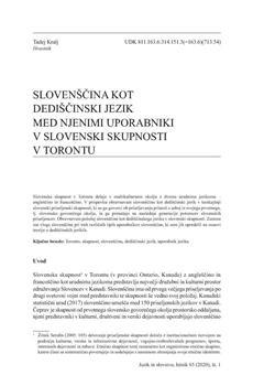 Kralj, Tadej. "Slovenščina kot dediščinski jezik v slovenski skupnosti v Torontu."