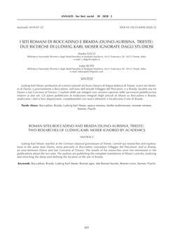 Flego, Stanko, Rupel, Lidija (2020). I siti romani di Boccadino e Braida (Duino-Aurisina, Trieste).