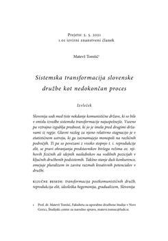 Tomšič, Matevž (2021). Sistemska transformacija slovenske družbe kot nedokončan proces.