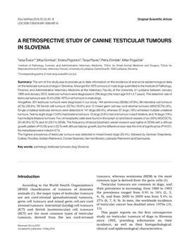 Švara, Tanja, Gombač, Mitja, Pogorevc, Estera, Plavec, Tanja, Zrimšek, Petra, Pogačnik, Milan. "A retrospective study of canine testicular tumours in Slovenia."